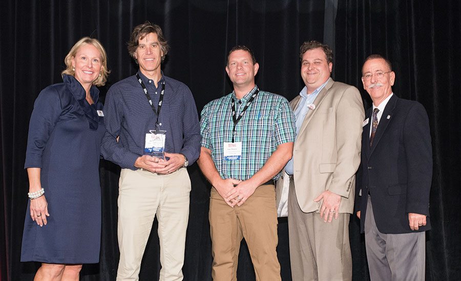 RC Publisher Jill Bloom presented the 2016 Residential Roofing Contractor of the Year award to Able Roof/Mr. Roof President Jim Ziminski at the 2016 Best of Success conference in September. Also pictured are (from left) Dan Moore, RC Editor Art Aisner and RC Editorial Director Rick Damato. Photo by Proshots Event Photography.