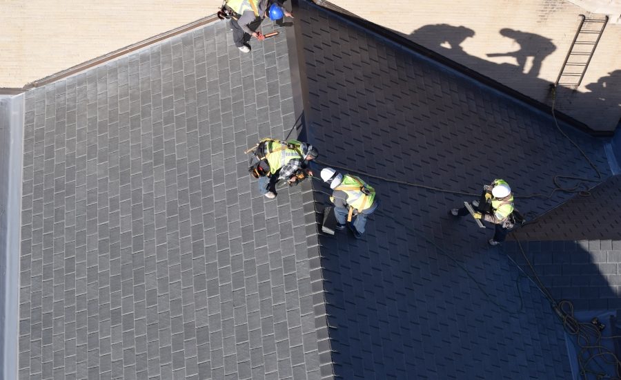 “Three main parts of the church were constructed in different eras with building methods and materials unique to those times,” says Mark McMillan with Horn Brothers Roofing. “Construction on the cathedral was completed in 1910. The Parish Hall was added in 1927 and then Roberts Hall in 1957. We had to find a way to remove and safely lower down tons of existing real slate and clay tile roofing materials before we could begin installation of the new DaVinci Roofscapes Single-Width Slate composite tiles.”