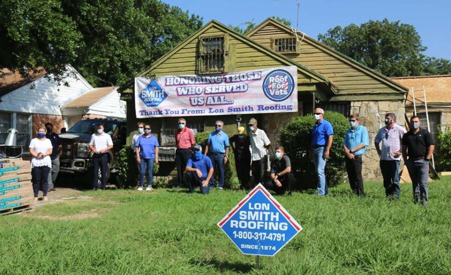 Roofing contractors create their own opportunities to give back as well. Veteran-owned Golden Hammer Roofing in Jacksonville, Fla., joined Home Depot and American Legion Post 137 to fix the roof of an 87-year-old Navy veteran in September. In June, Lon Smith Roofing donated a roof through its “Roof for Vets” program to an Army veteran in Dallas battling cancer.