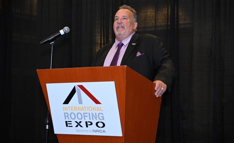 Rod Petrick, chairman of the NRCA board, speaks to attendees