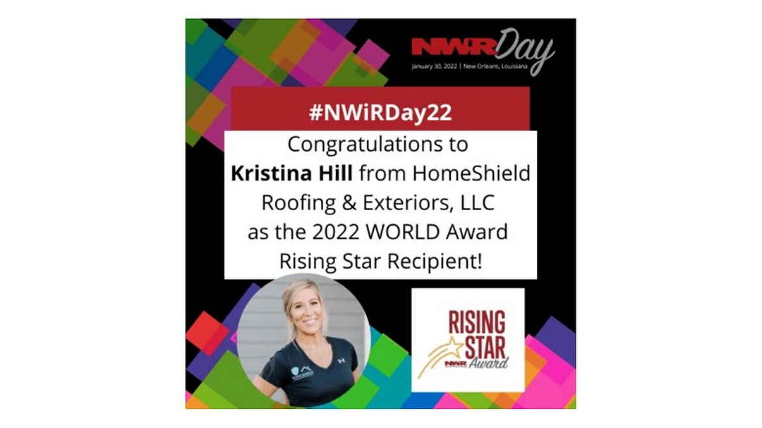 Kristina Hill was named the 2022 WORLD Rising Star. Image courtesy of National Women in Roofing.