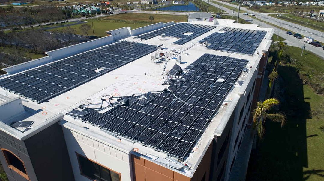 Advanced Roofing Inc. is helping customers with solar, like Mercola Market, to repair their systems after Hurricane Ian. Photo: Advanced Roofing Inc.