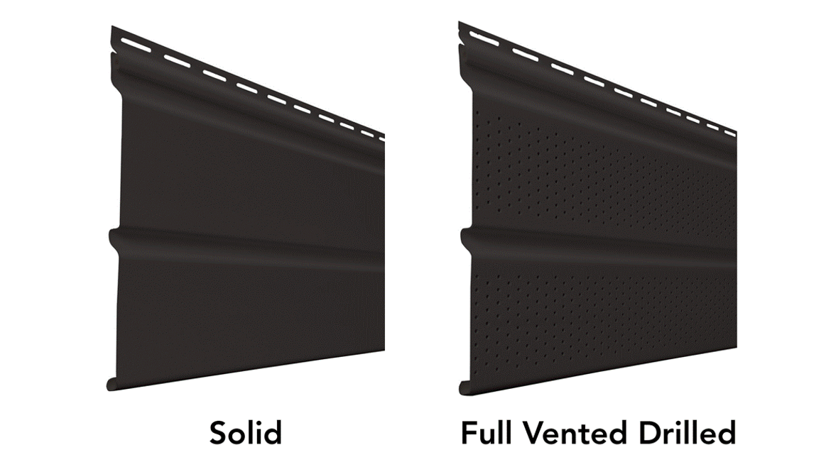 - Coal Black soffit is available in ProVia’s Universal vinyl soffit line