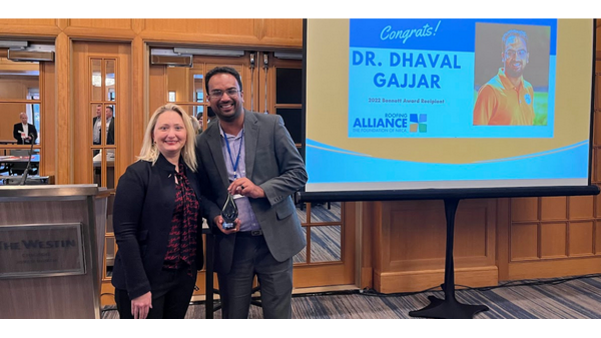 ROSEMONT, Ill. — The Roofing Alliance announced the winner of the 2022 Bennett Award to be Dr. Dhaval Gajjar of Clemson University. The award recognizes individuals who volunteer and offer notable positive accomplishments on behalf of the Roofing Alliance and the roofing industry.