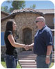 Scott Riopelle, owner of Interstate Roofing, talks with another satisfied customer.