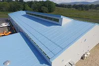 The standing seams serve as a place to attach photovoltaic panels to supply electricity within the building. Mehlman said BuildSense likes to use “off-the-shelf” products in unconventional methods to achieve its goals. Metl-Span’s CF42R insulated standing-seam panels are more commonly used on refrigerated buildings.