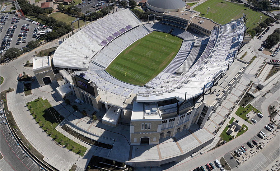 Chamberlin Roofing & Waterproofing crews have worked on major structures throughout Texas, including (above) Love Field and Amon G. Carter Stadium at Texas Christian University.