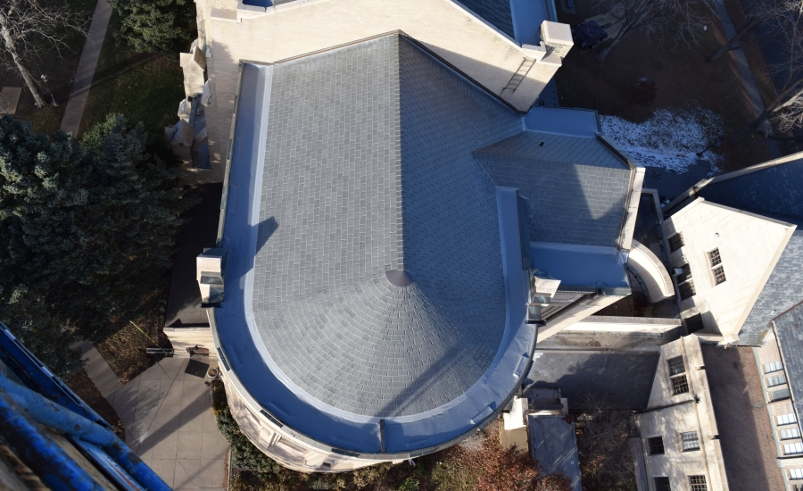 According to McMillan, perhaps the most challenging aspect of re-roofing the cathedral was the apse. Because of its semi-circular shape, each piece of insulation and nail base had to be cut in precise shapes and beveled at multiple angles to replicate the historical architecture.