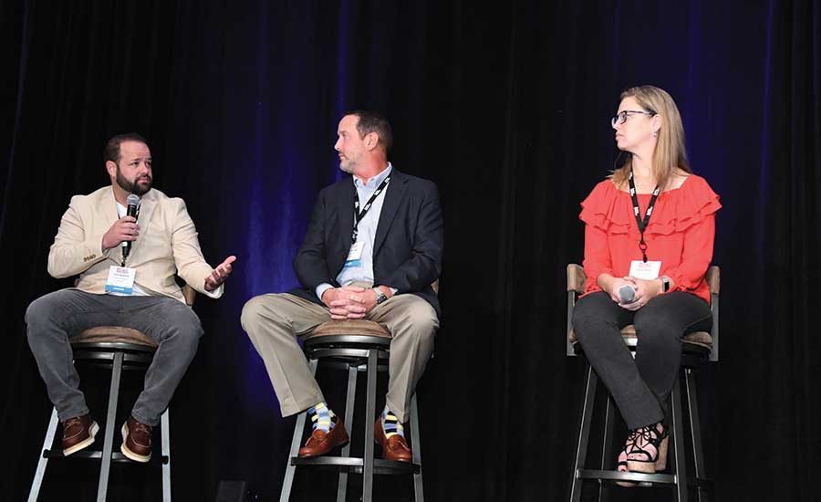Joining Morgan on the panel were: Sean Beckham, project manager and estimator with Front Range Roofing Systems LLC, of Greeley, Colo.; Chris Bowman, vice president of Collins Roofing Inc., of Lehi, Utah; Bryan Karel, vice president of operations for Garlock-French Corp., of Minneapolis; and Diana Harari, director of administration for Red Pointe Roofing in Orange, Calif.