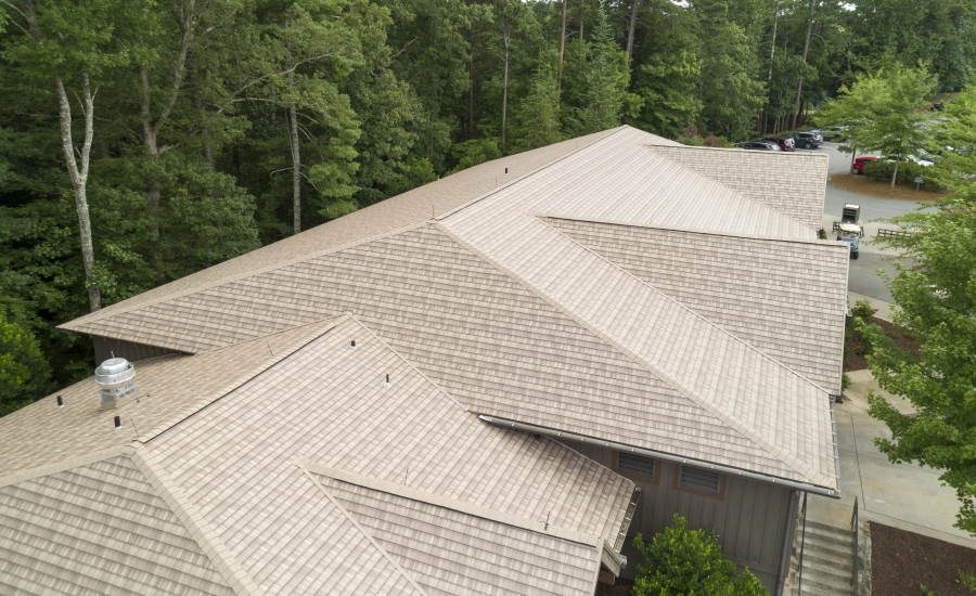 “Putting a roof on an operating business is difficult, so it required a lot of coordination with the property owners association,” said Seymour. “Big Canoe is also up in the mountains, so some of the bridges and roads you have to navigate aren’t meant for tractor-trailers and big machinery. If we were doing a standing seam roof where you have to stage long runs of metal and cut them to size, we would have definitely had some issues transporting it.”