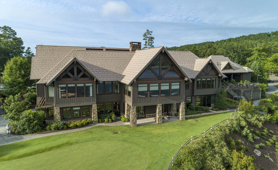 In the center of it all, the Clubhouse at Lake Sconti, which serves as Big Canoe’s central activity hub and meeting place. It boasts stunning views of Lake Sconti and a combined 35,000 square feet of meeting rooms, dinning space, and golf cart storage. The original, 1970s-era clubhouse burned to the ground 14 years ago after suffering a lightning strike. Despite rebuilding the clubhouse in 2006 with a classic cedar shake roof, severe wind and hail damage from recent North Georgia storms left the roof so badly damaged that it needed a full replacement.