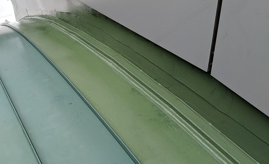 The most common design technique at these points is the insertion of a trapezoidal closure between the gutter and the panels. These are typically fabricated from foam or plastic and should be installed in accordance with the metal system manufacturer’s latest printed specifications. The most important design element is specifying an adequate seal through adhesion. This eliminates the potential of wind blow-off or moisture infusion at unadhered openings.