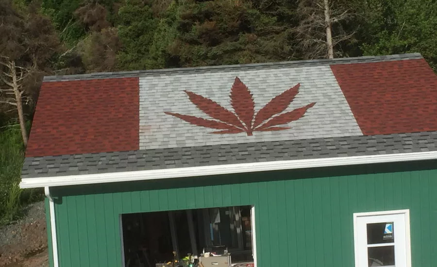 MMI Roofing enjoys the challenge of creating unique shingle artwork, such as this Canadian flag with a marijuana leaf for a customer who is a licensed medical marijuana producer.