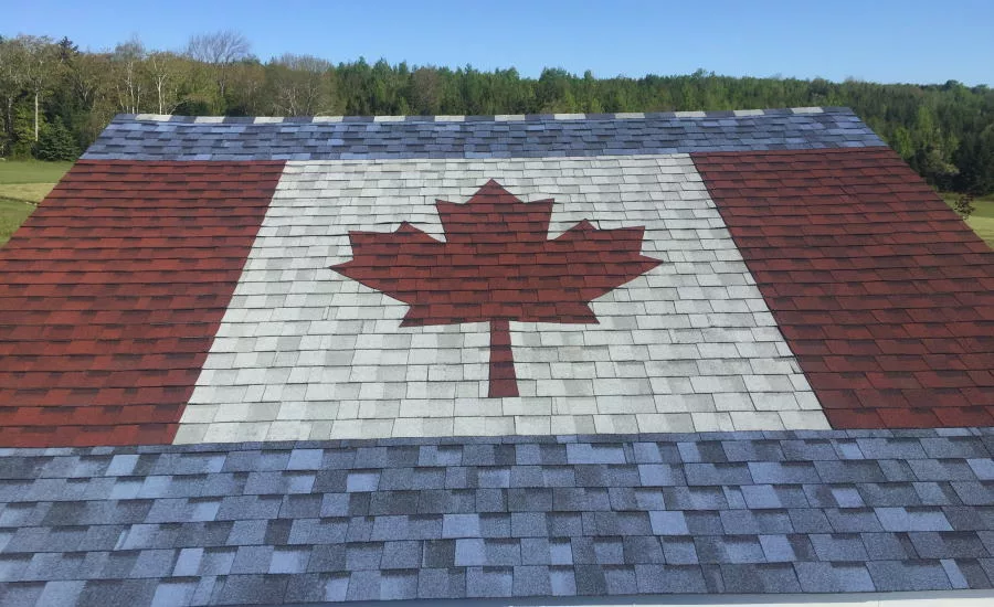 Among MMI Roofing's shingle artwork is this recreation of the Canadian flag.