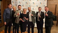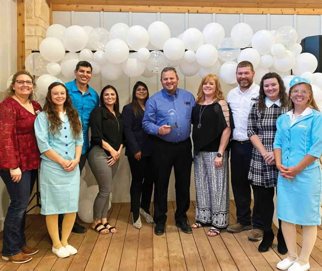 IKO’s asphalt shingle manufacturing facility in Hillsboro, Texas, was recently named Hillsboro Area Chamber of Commerce Regional Business of the Year. Holding the award is IKO’s David Anthony, who was joined on stage by fellow IKO employees Michael Lara, Ariel Moore, Krystal Sanchez and Warren Vantreese. Photo courtesy of the Hillsboro Reporter.