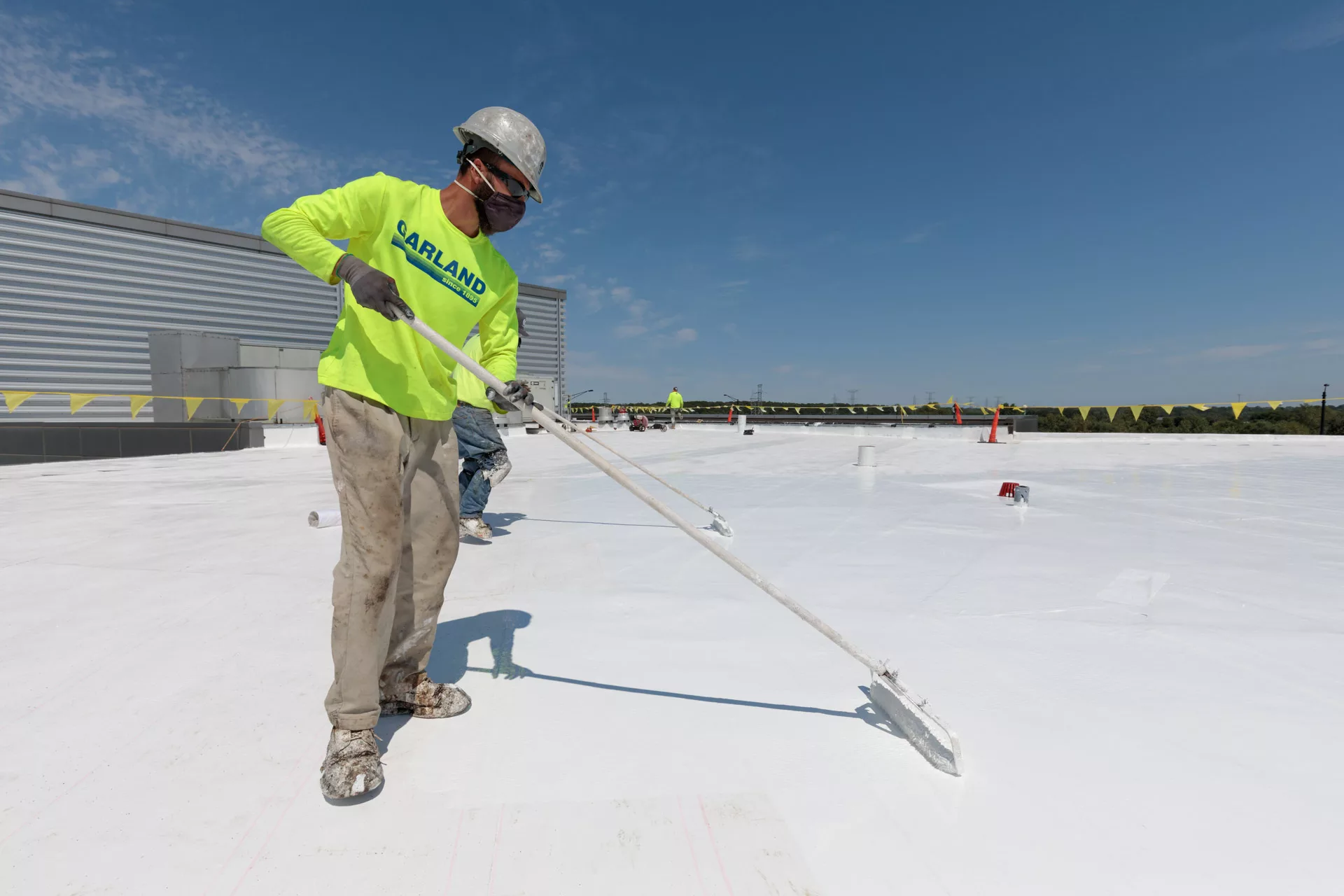 GAF RoofShield® I.S. Fast-Dry Elastomeric Acrylic Coating is a perfect match for cool roofing solutions, given the high reflectivity of its white surface. The water-borne acrylic polymer dispersion system provides fast, efficient installations with a high film build that can be applied in a single coat (up to 60 wet mils). It is quickly resistant to rainwater wash-off and also provides faster dry-to-touch time than traditional acrylic coatings. With proper preparation, RoofShield I.S. is compatible with various substrates, including TPO, EPDM, granulated BUR, structural concrete, and metal, among others. For more information, please visit www.gaf.com/instantset.