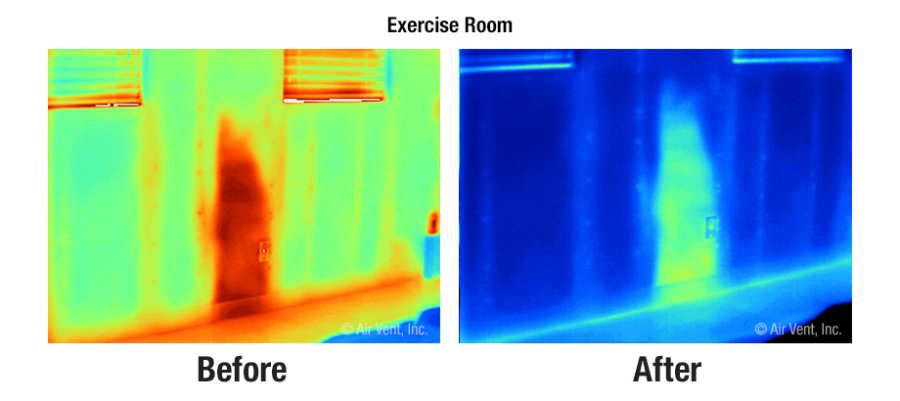 Before and after thermal imaging of an attic with proper ventilation. Images and photos courtesy of Air Vent Inc.