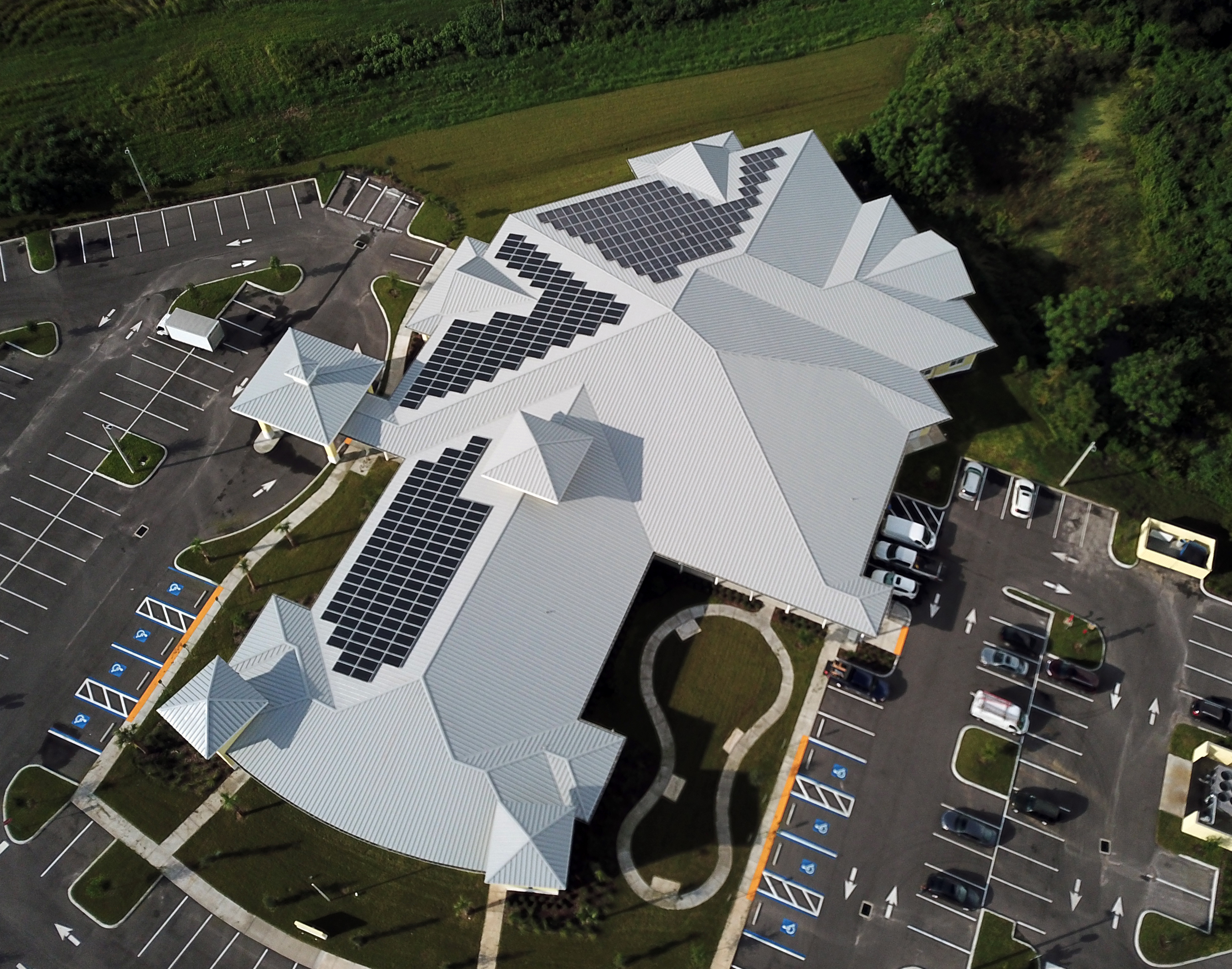 The new Riverview Branch Library in Riverview, Fla., features 44,276 square feet of Field-Lok standing seam metal roof panels, manufactured by ATAS International, in Dove Grey .040 aluminum. The mechanically seamed panels have a 2-inch seam height and 15 ¼-inch panel width. The 2-inch Field-Lok panel is a double-locked structural panel that can meet severe load requirements. It’s an ideal choice for solar systems due to its long service life and ability to attach PV to the roof with any penetrations. Building owners also benefit from a roofing substrate that has a greater life expectancy than the solar panels. Visit atas.com for more information.