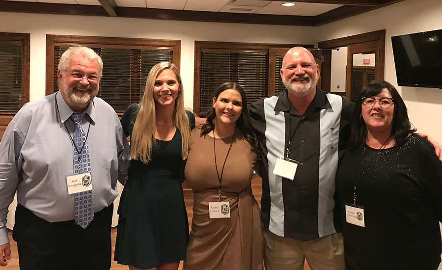 Independent Roofing leadership during its 100th anniversary celebration in 2019. FROM LEFT: Bob Swanda, Jr., president; Casey Crandall, HR manager (former); Kellie Paasch, vice president; Tom Swanda, safety manager; and Yvonne Armstrong, office manager.