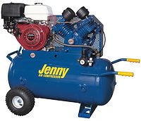 Numerous features come standard with the compressors to optimize their reliability and reduce maintenance requirements. These include powder-coated air tanks and heavy-duty cast-iron compressor pumps. A directional air shroud, finned intercooler and large flywheel keep pump temperatures low and assist in start-up. Also, Jenny’s professional-duty “Ultimate Blue” synthetic pump oil protects the unit’s pistons, crankshaft, bearings, rings and cylinders through a splash lubrication system. Furthermore, the compressor’s thermal overload protection helps prevent costly damage to the motor.