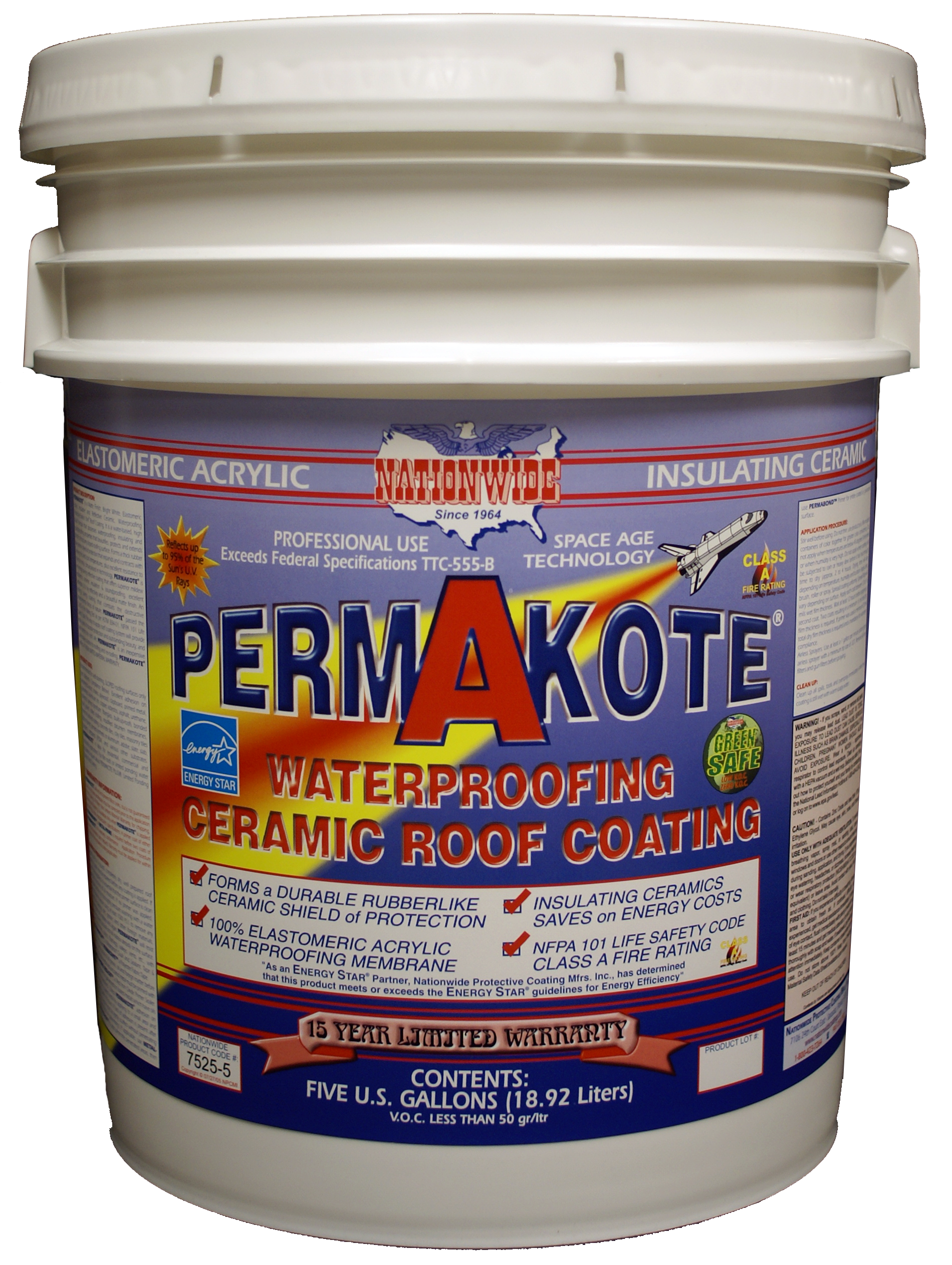 PERMAKOTE® Elastomeric Roof Coating is our most popular coating product for pitched roofs and most substrates (Flat Roof Formula Available). This 100% acrylic, elastomeric ceramic roof coating is available in competitors or custom colors with a 15-year warranty. Get the look you want on your next roof coating project! Unsurpassed in technology, PERMAKOTE is an energy saving reflective coating that offers superior mildew resistance, ceramic insulation and soundproofing, excellent adhesion, UV ray reflectivity and a beautiful matte or semi-gloss finish. This easy-to-apply elastomeric roof coating system will provide many years of protection, outstanding beauty and extend the roof’s life. Visit www.nationwidecoatings.com for more information.