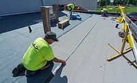 Roofers installed four acoustical smoke vents from BILCO, the manufacturer of specialty access products. The 5-foot by 7-foot vents include burglar bars to prevent unauthorized entry and a manual winch.