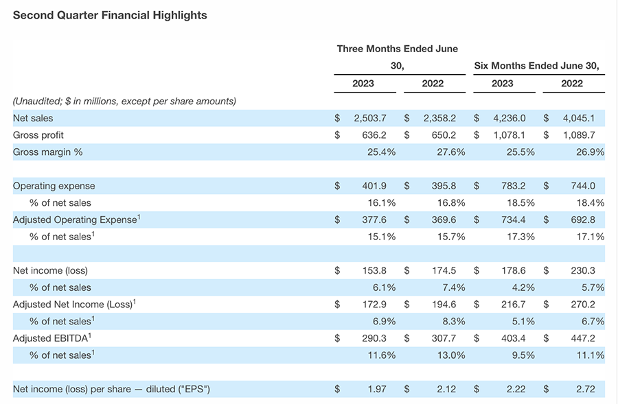 On a consolidated basis, both operating expenses as a percent of sales and Adjusted Operating Expenses as a percent of sales were comparatively lower in the second quarter of 2023, driven by the higher sales combined with cost management.
