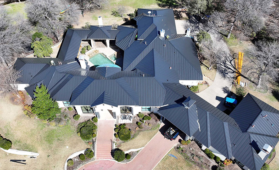 Absolute Construction installs a variety of roofing products, including metal. This job became one of Wood’s largest residential metal installs. The complex layout certainly makes it a signature project for the company that serves Louisiana, Kansas, Missouri and Oklahoma, in addition to the Lone Star State.